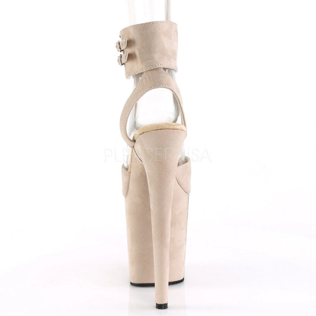 Additional Info: 8″ (203mm) Heel, 4″ (102mm) Platform Ankle Strap Sandal Featuring Wide Ankle Band W/ Dual Buckle Straps.