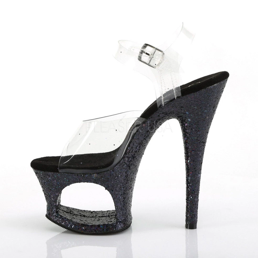 MOON-708LG Clear /Black Multi Glitter Platforms (Exotic Dancing) (SKU: MOON708LG/C/BG)
