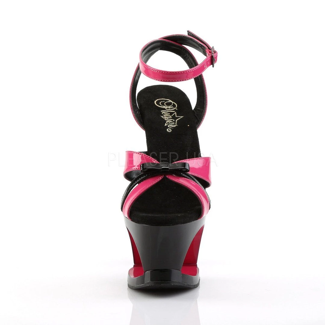 Additional Info: 7″ (17.8cm) Heel, 2 3/4″ (7cm) Cut-Out Platform Two Tone Wrap Around Ankle Strap Sandal with Bow Ornament.