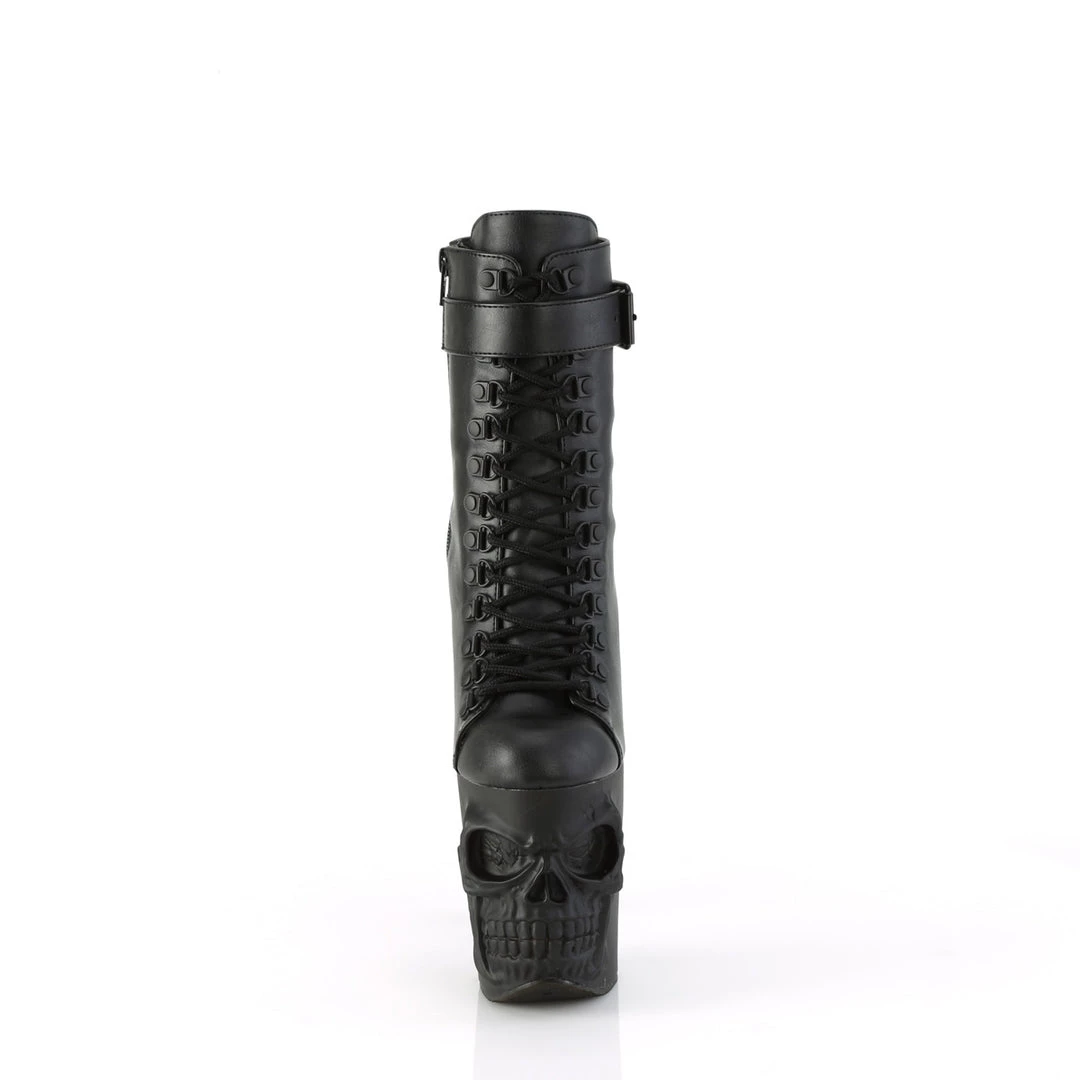 Details: 8 Inch Finger Bone Heel, 4 Inch Skull Plaform Ankle Boot, Inside Zip.