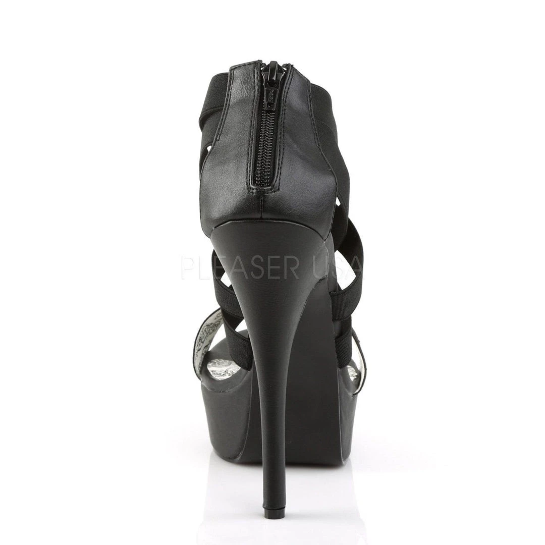Details: 5 3/4 Inch Heel, 1 3/4 Inch Plaform Cross Close Back Sandal, Back Zip.
