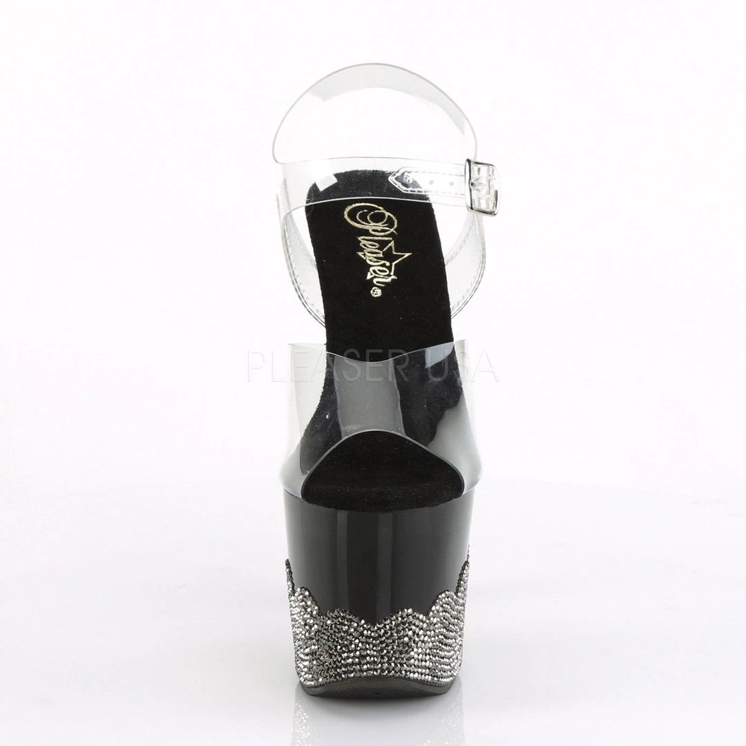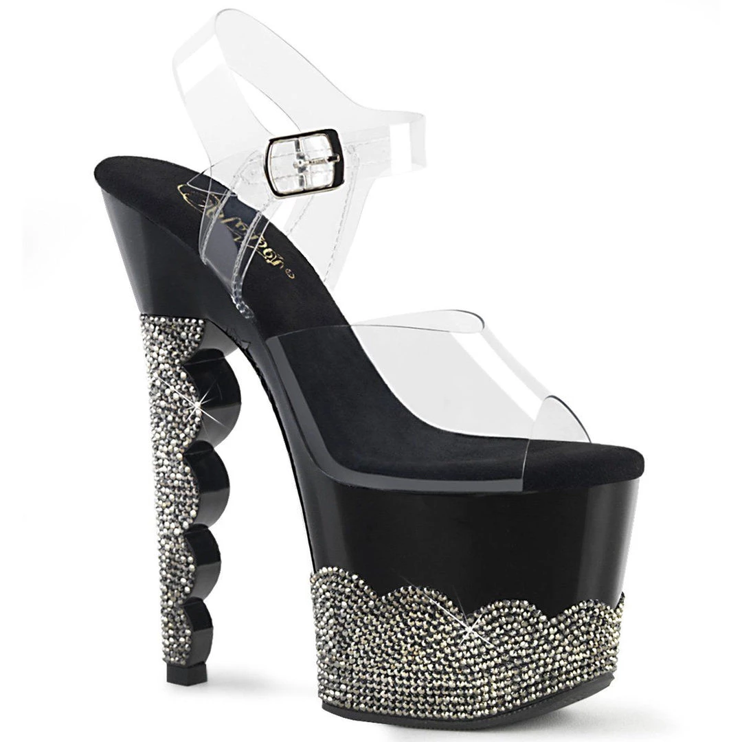 SCALLOP-708-2RS Clear /Black-Pewter Rhinestones Platforms (Exotic Dancing) (SKU: SCLP708-2RS/C/B-PWRS)