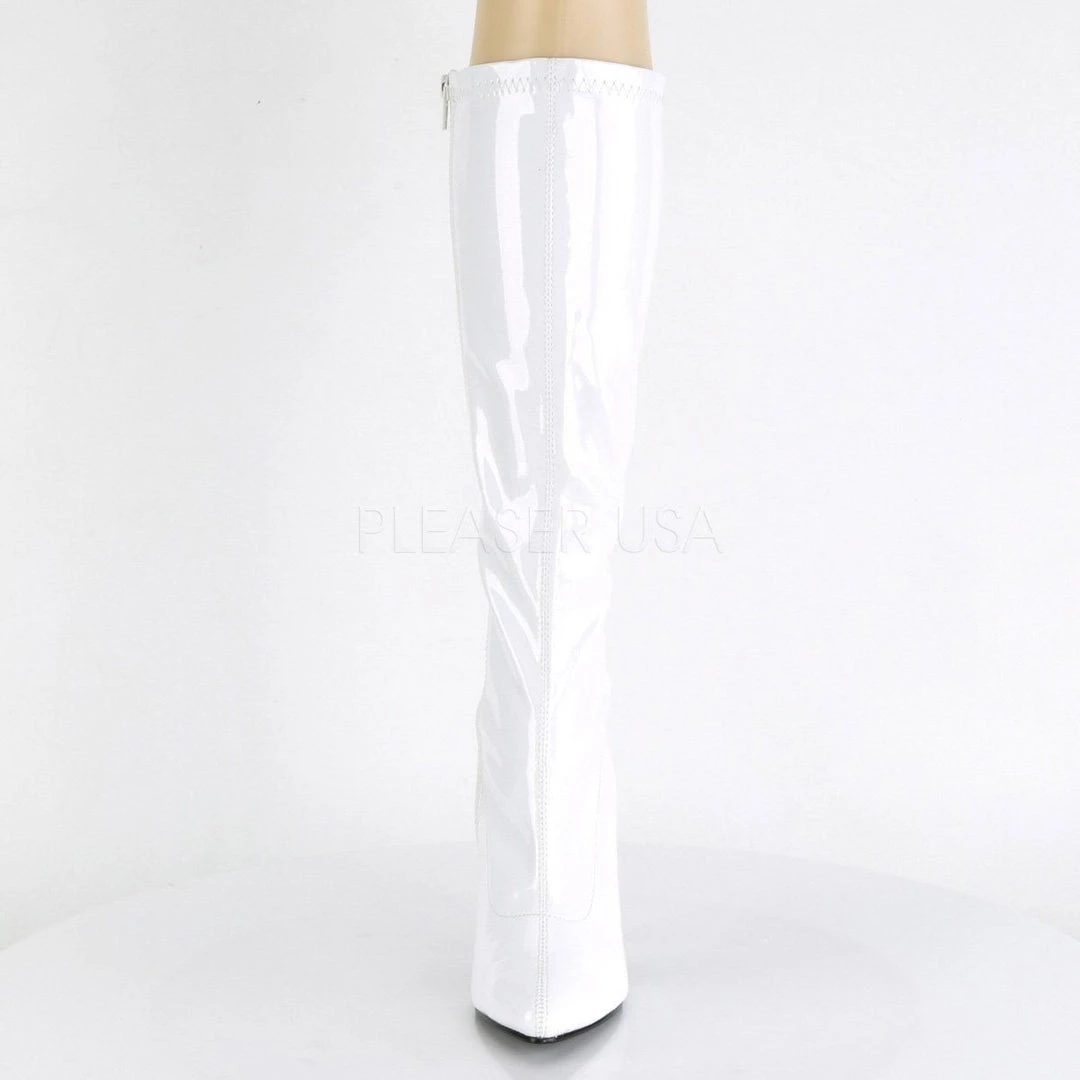 Additional Info: 5″ (12.7cm) Heel Plain Stretch Knee Boot, Full Inner Side Zip Closure.