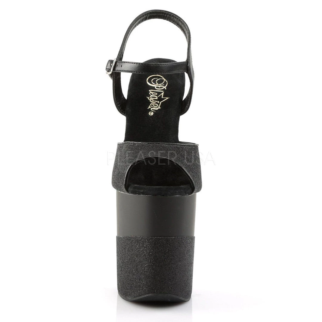 Additional Info: 8″ (20.3cm) Stiletto Heel, 4″ (10.2cm) Platform Ankle Strap Sandal Featuring Half Glittered Platform.