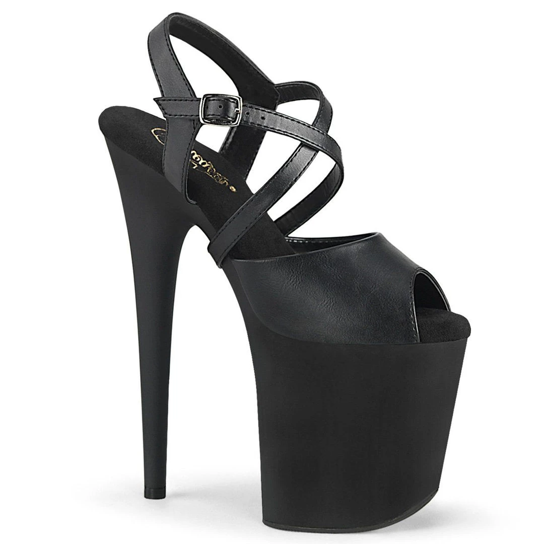 Details: 8 Inch Heel, 4 Inch Plaform Peep Toe Criss Cross Ankle Strap Sandal.