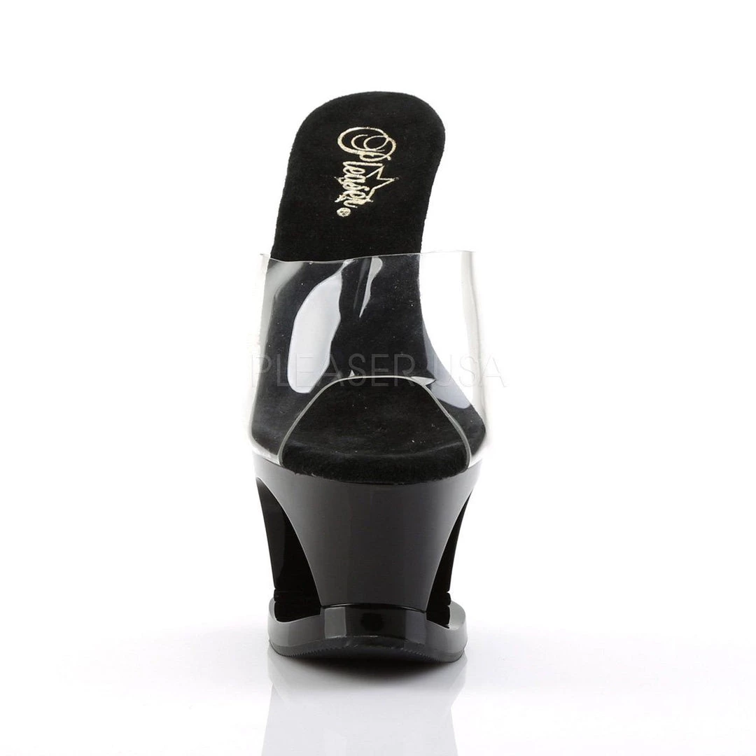 Details: 7 Inch Heel, 2 3/4 Inch Cut-Out Plaform Slide.