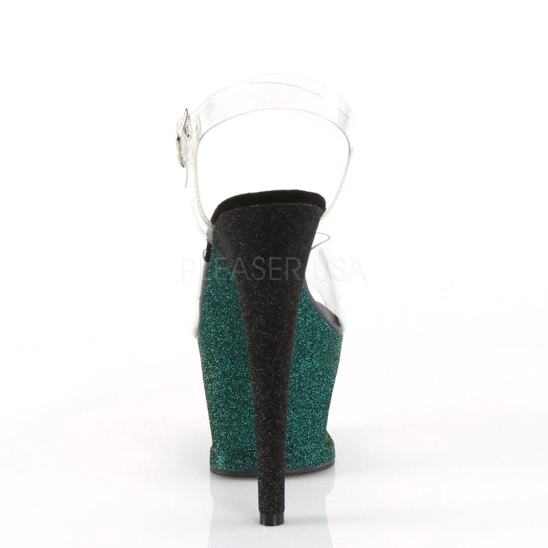 MOON-708OMBRE Clear /Emerald-Black Ombre Platforms (Exotic Dancing) (SKU: MOON708OMBRE/C/EM-B)