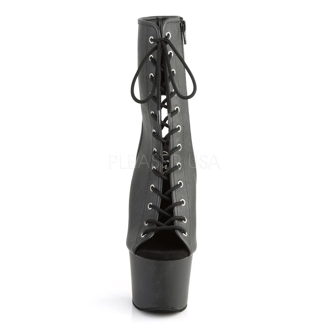 Additional Info: 7″ (178mm) Heel, 2 3/4″ (70mm) Platform Open Toe/Heel Front Lace-Up Ankle Boot, Side Zip Closure.