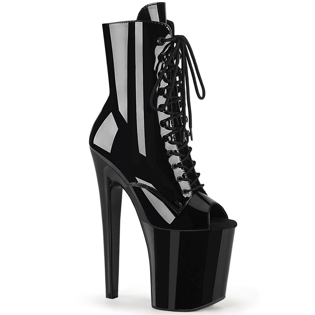 Additional Info: 8″ (200mm) Heel, 4″ (100mm) Platform Peep Toe Lace-Up Front Ankle Boot, Inner Side Zip Closure.